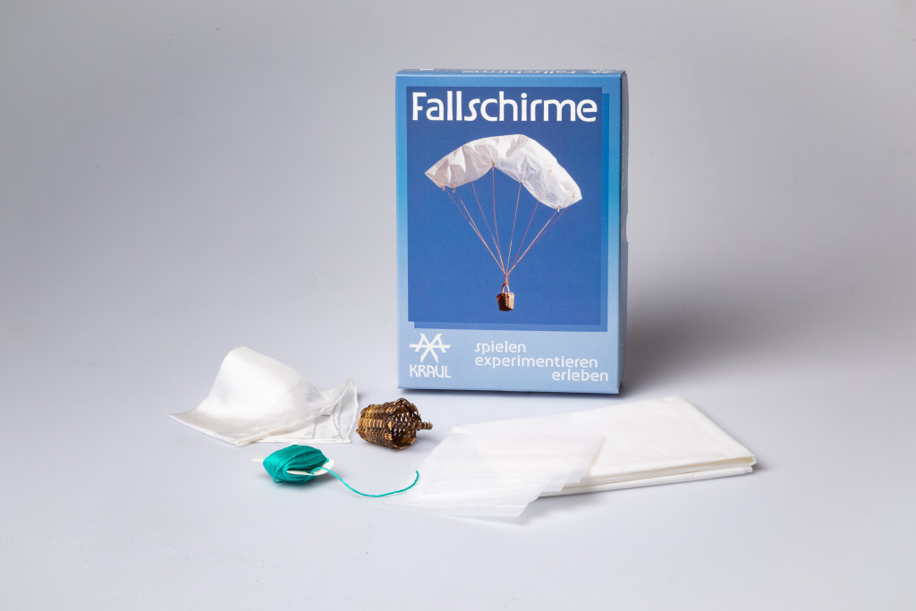 Ez a klasszikus, kísérleti tanulást segítő játék hat lap selyempapírt (két méretben), egy tiszta selyem négyzetet (28x28cm), pamutfonalat és egy kis kosarat tartalmaz (a kis utas törpe nem része a készletnek). A csomag teljes, részletes, angol nyelvű útmutatót tartalmaz, valamint egy rövid történetet az ejtőernyőzésről és információkat az Apollo 15 holdra szállásánál használt kapszula-ejtőernyőről. Ezt az Ejtőernyő készletet élvezni fogják azok a gyermekek, akik a röppálya sémát fedezik fel, fejlesztve az ok-okozati összefüggések megértését, miközben megtanulják, hogyan mozognak a tárgyak és ők maguk. Ez a fajta játék a természetes gyermekfejlődés része, és támogatja a mozgáson és ismétlésen keresztüli tanulást. Ideális otthoni tanuláshoz, osztálytermi tudományos órákhoz vagy csendes, kreatív játékhoz. A Kraul Ejtőernyő készlet 10 éves és annál idősebb gyermekek számára a legmegfelelőbb. Az ejtőernyők megépítéséhez felnőtt segítség javasolt a fiatalabb gyermekek számára. A Kraul által Németországban készült ejtőernyő készlet a gondosan megtervezett tudományos játékok sorozatának része, amelyek valós felfedezés és játék révén keltik életre a természeti erőket.